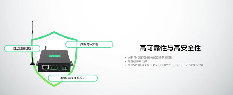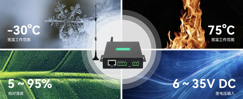 蜂窝网络连接,含60GB/365天vSIM流量套餐(无需实体SIM卡;通电自动激活,60GB流量自激活日起连续365天有效)。流量套餐可通过RemoteMonit.com云平台监控和管理。