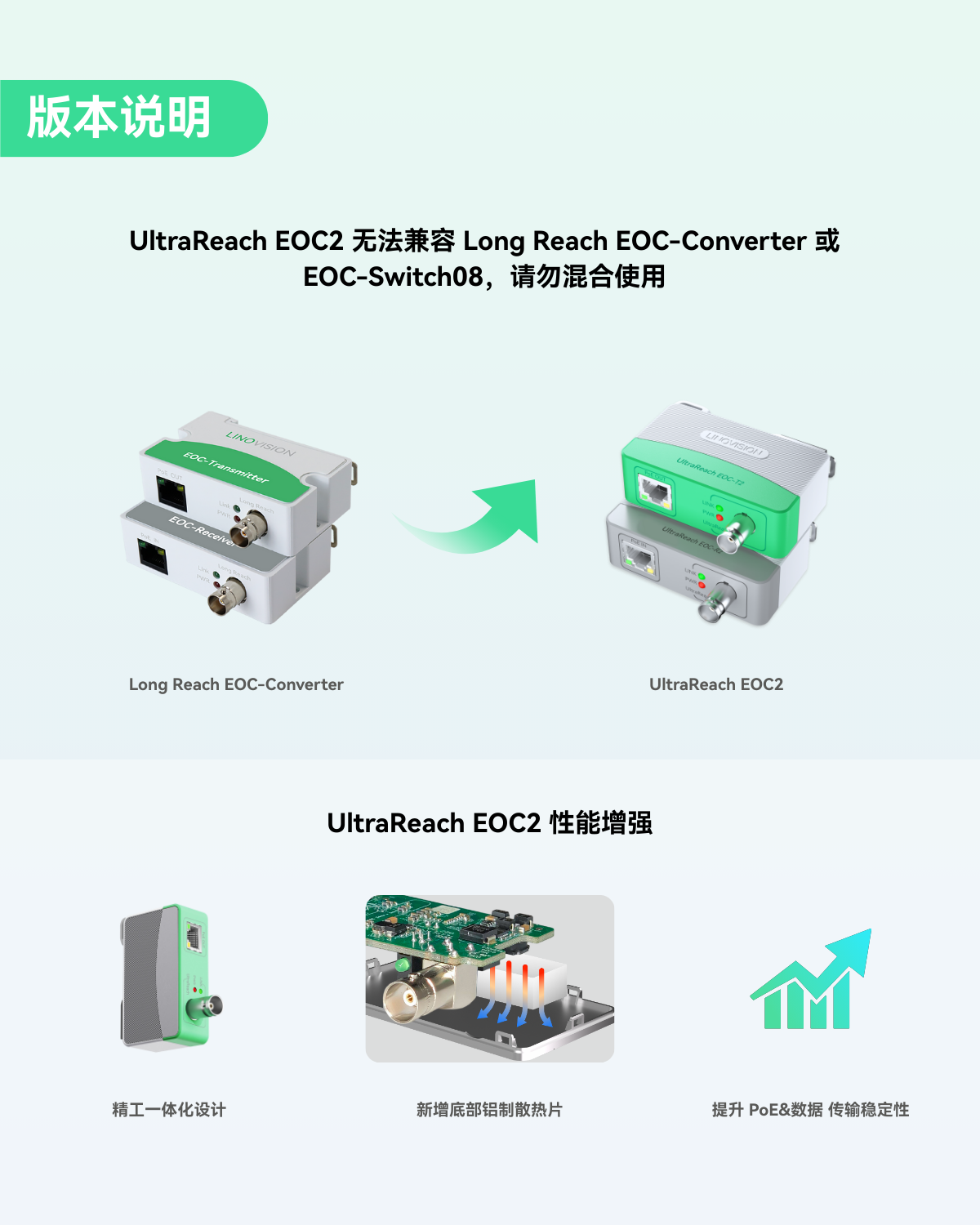 兼容性说明 - 此升级版不支持EOC交换机。若需连接EOC交换机,请选择经典版本。