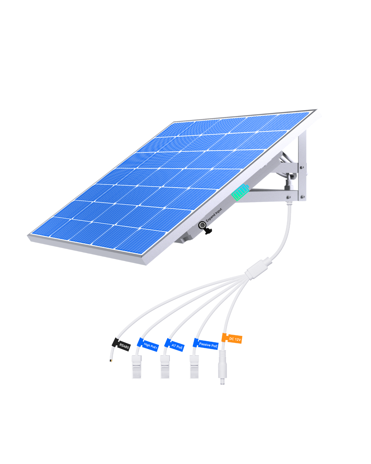 全集成5合1智能太阳能供电系统,用于安防摄像机和物联网设备,支持3口PoE输出