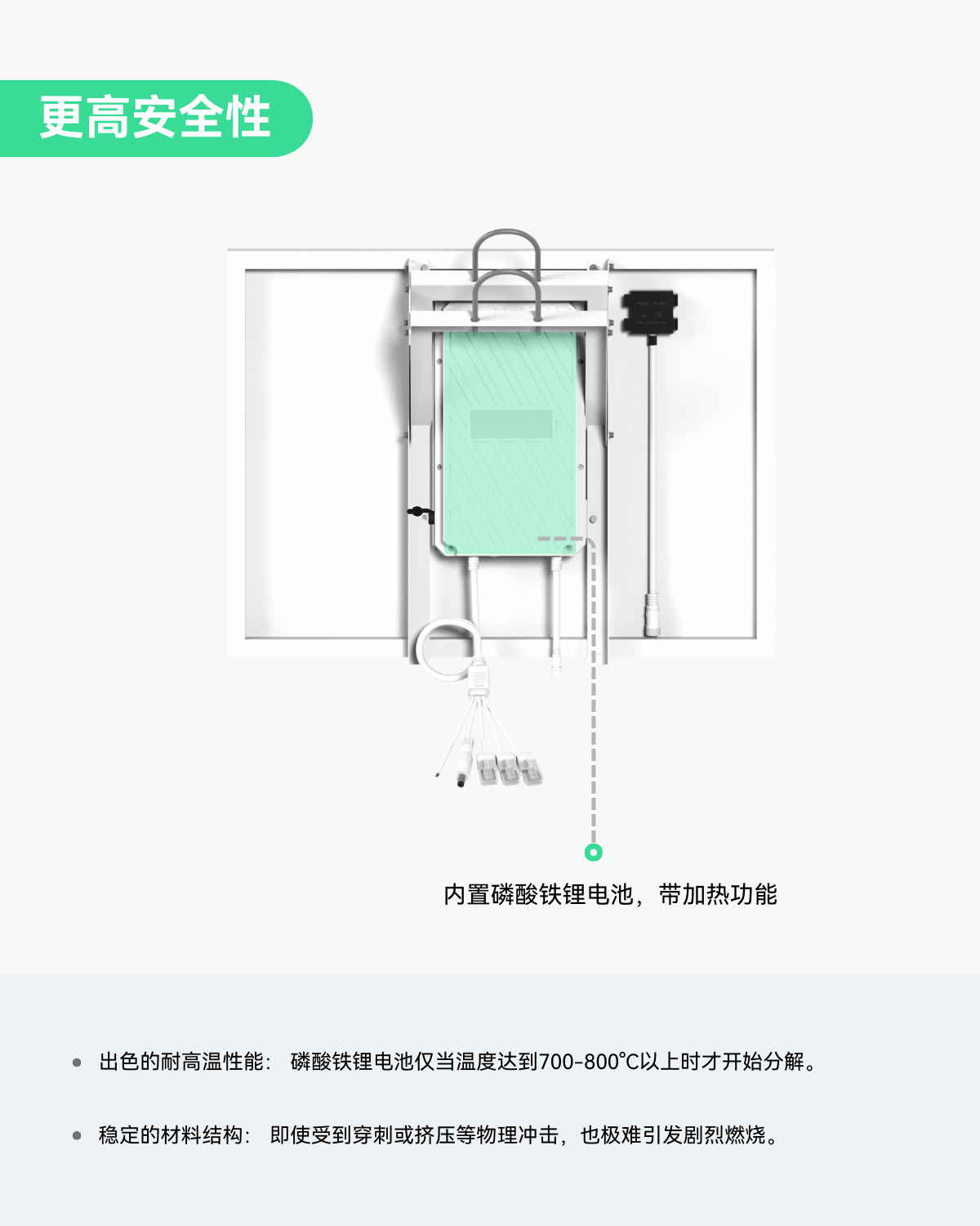 - 更高安全性 - 磷酸铁锂(LiFePO4)电池提供更强的安全性,具备出色的耐高温性能和稳定的材料结构